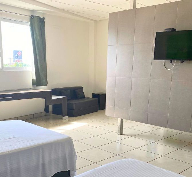 Perfecta para grupos o familias, con dos camas matrimoniales que garantizan comodidad para hasta cuatro personas.
